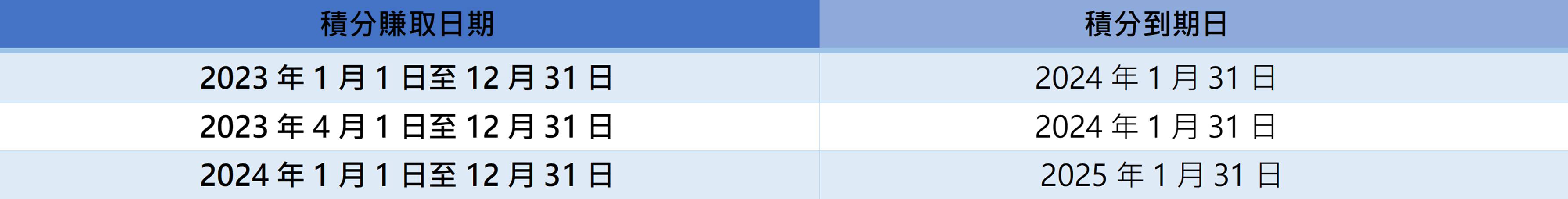 已賺取的Blua積分將有效至下一年度首月的最後一天]。